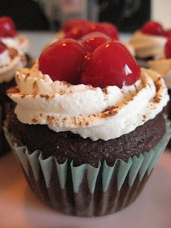 I got the recipe for the cake portion of the black forest cupcakes from AllRecipes. The cake itself is simply a chocolate cake. All of the cherry flavor comes from soaking the cake in liqueur and the cherry filling. The coffee extract is optional, but it does add an extra dimension to the flavor. If you don't have coffee extract, you can use freshly brewed espresso. Your cupcake will be pretty moist after filling it with the cherries and juice. But since I almost always add a bit of liqueur in my cakes, I cut out the juice and added a bit of cherry liqueur.